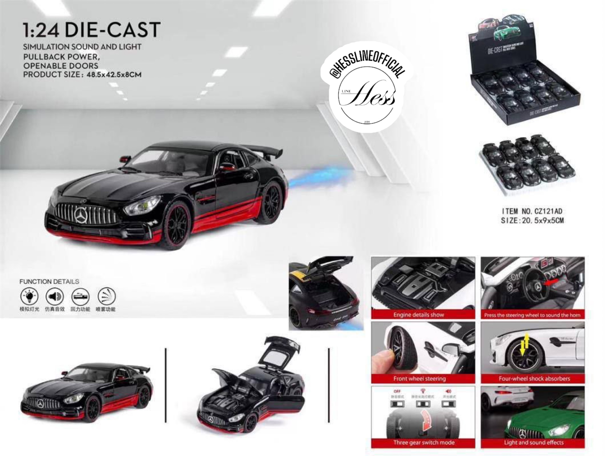 1. بنز AMG دارای ویژگی موزیکال-چراغدار-عقبکش-فلزی با مقیاس 1:24