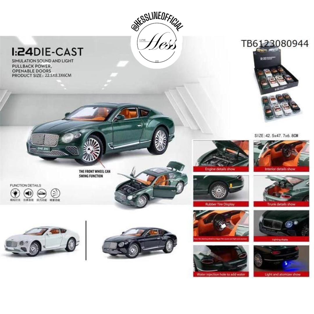 ماشین بنتلی موزیکال چراغدار فلزی و عقبکش و دودزا- رنگ سبز